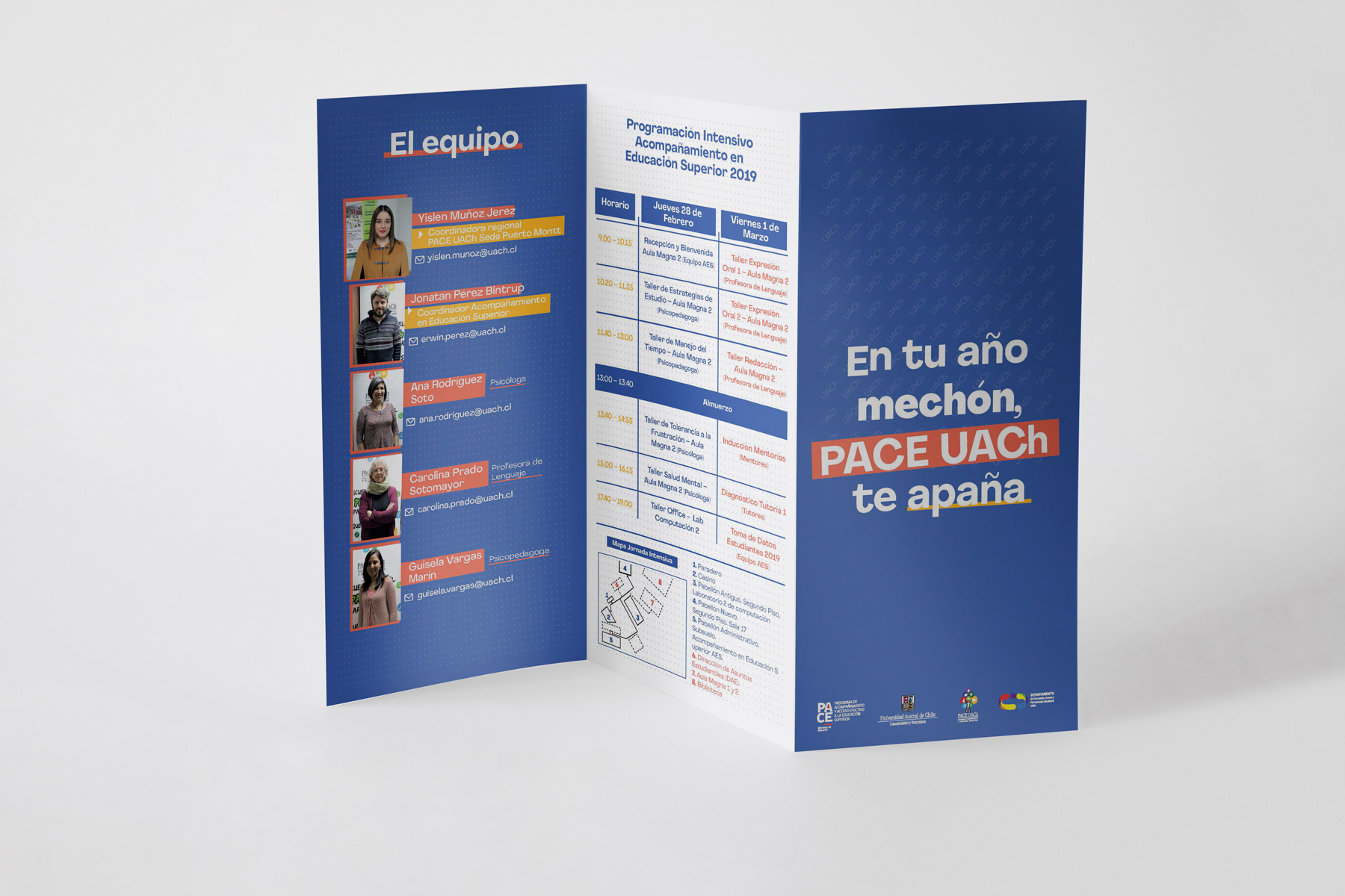 Brochure (triptico) para el programa PACE, de la Universidad Austral de Chile (UACh), sede Puerto Montt